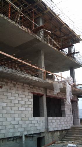 На здании общественно-торгового назначения по ул. Антонова 29 в г.Гродно, осталось выполнить монолитные перекрытия консольной выступающей части здания и каркас готов. |